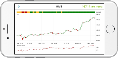Les graphes dynamiques VectorVest sont simples mais puissants. Choisissez de faire apparaître les classements Acheter/Vendre/Garder pour n'importe quel actif, ou ajoutez l'Indicateur de Tendances de Timing Relatif exclusif à VectorVest, pour apercevoir les revirements de tendance potentiels avant même qu'ils se produisent.