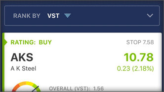 Profitez d'un accès total à plus d'une dizaine de listes VectorVest des actifs les plus performants. Chaque liste repose sur une recherche sur mesure, qui interroge en permanence la base de données VectorVest pour trouver en temps réel les actifs gagnants.
