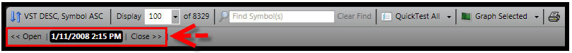 The Date/Time Control is found throughout VectorVest RealTime, and allows you to select the date and time of the information displayed.
