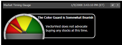 The Market Timing Gauge reflects the current status of the VectorVest Color Guard, and lets you know whether the market is Bullish, Bearish, or Neutral.