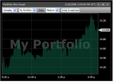 Portfolio Selector: The second selection box on the Portfolio MiniGraph Toolbar allows you to select which portfolio to track. By default, the first portfolio listed on the Portfolios tab will be displayed. Note: You must create a portfolio using the Portfolios Tab before it can be selected from the list. you can add multiple Portfolio MiniGraphs to the HomePage and Dashboard.
