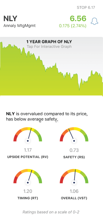 VectorVest advocates buying safe, undervalued stocks, rising in price. As for Annaly, it has good upside potential and a positive price trend, but poor safety.