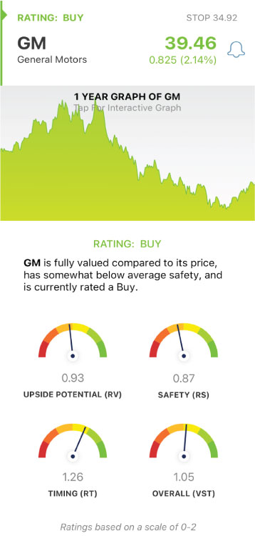 VectorVest advocates buying safe, undervalued stocks, rising in price. As for General Motors, it has fair upside potential with below average safety – but the timing is very good.