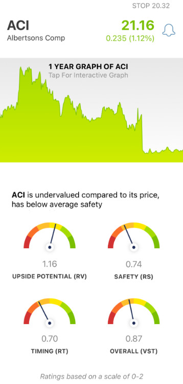- Poor Safety: Taking a look at ACI’s risk, VectorVest deems the stock to be unsafe - with a poor RS rating of 0.74 right now. This is calculated based on the company’s financial consistency and predictability, debt-to-equity ratio, and business longevity.