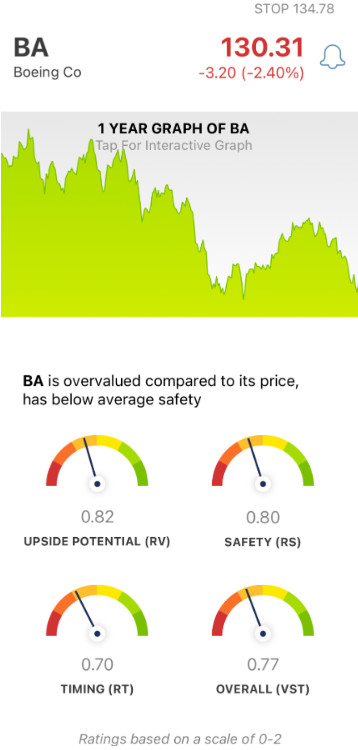VectorVest advocates buying safe, undervalued stocks, rising in price. As for BA, it is overvalued with poor upside potential, poor safety, and poor timing.