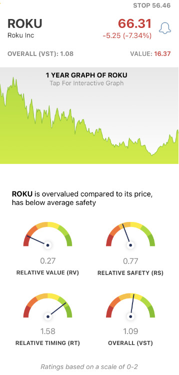 VectorVest advocates buying safe, undervalued stocks, rising in price. As for ROKU, it is overvalued with very poor upside potential, poor safety, and excellent timing.
