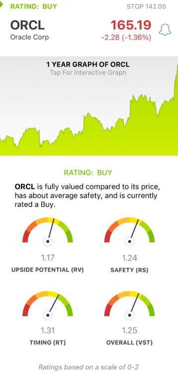 It gets even easier though, as you’re also given a buy, sell, or hold recommendation for any given stock at any given time based on its overall VST rating. Here’s what we found for ORCL: