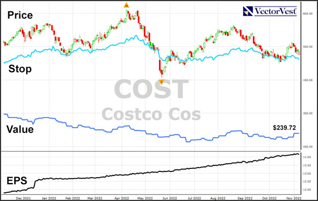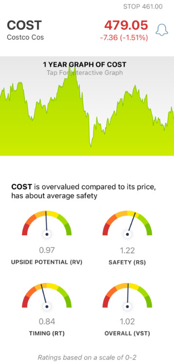 VectorVest advocates buying safe, undervalued stocks, rising in price. As for COST, it has fair upside potential and good safety, but poor timing.