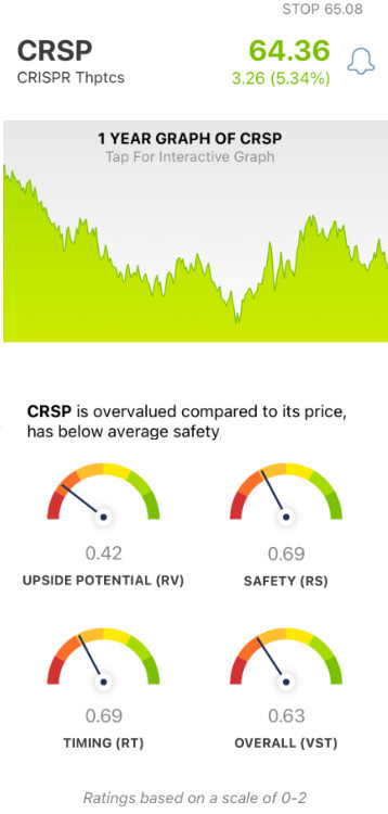 VectorVest advocates buying safe, undervalued stocks, rising in price. As for CRSP, it is overvalued with very poor upside potential in spite of the news regarding their new drug. Furthermore, the stock has poor safety and timing.