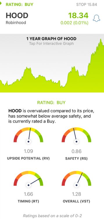 The overall VST rating of 1.28 is very good and earns HOOD a BUY recommendation in the VectorVest system. But before you go make your next move, take advantage of a free stock analysis at VectorVest to get the full scoop. Win more trades with less work and stress by leveraging the VectorVest system today!