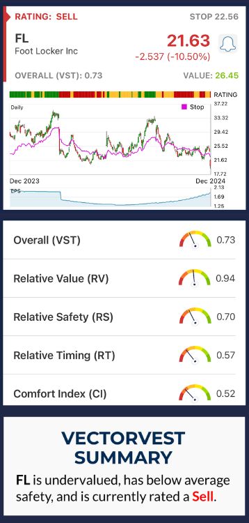 VectorVest advocates buying safe, undervalued stocks, rising in price. FL faces several challenges for the remainder of the year. For now the stock carries a SELL recommendation, and investors should consider the risks carefully.