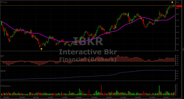 From its March 23, 2020 low of $33.70 to its closing price of $86.72 on February 17, 2023, IBKR has advanced 157% compared to 86% for the S&P 500 and 75% for the VectorVest Composite for the same time period. Currently, the stock price is comfortably above its 40-day moving average and consolidating over the past nine days. An upside breakout appears imminent, but it is necessary to see how the overall market behaves after President’s day. A reversal to the downside is possible if the market takes a breather, after its 6.2% year-to-date gain in the S&P 500. IBKR is the 3rd highest VST performer out of 37 companies in the brokerage industry tracked by VectorVest. The average trading volume is just over one million shares a day.