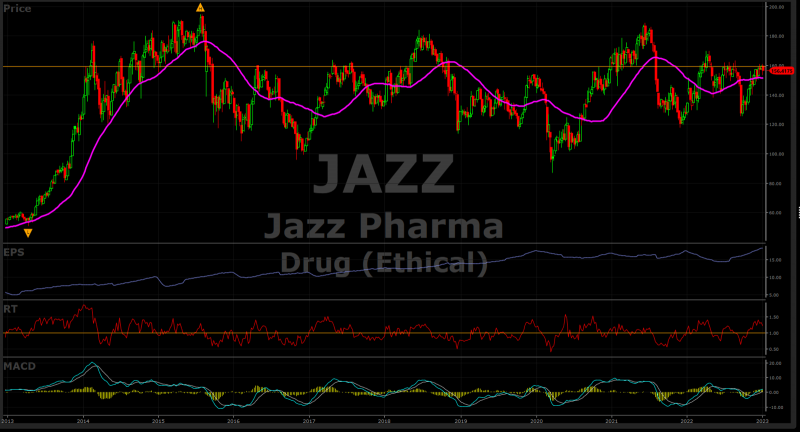 In 2022 JAZZ gained 25% vs. a loss in the S&P 500 of 19%, a solid relative strength performance in a tough market environment. JAZZ’s all-time high of $192 occurred on July 27, 2015, and it almost pierced it on June 14, 2021, reaching $189 intra-day before fading to an intra-day low of $86.88 in mid-June. Since then, it has bounced back to the $156 area which it has gravitated to seven times since 2014. The stock price is currently above its 40-DMA and appears to be attempting a take on the $180 area. Therefore, this may be an opportune time to take a position in this dynamic company. JAZZ trades about 567,000 shares a day, certainly sufficient for traders and investors alike.