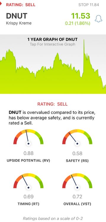 Better yet, you’re presented with a clear buy, sell, or hold recommendation for any given stock at any given time based on the overall VST rating. As for DNUT, here’s what we’ve uncovered: