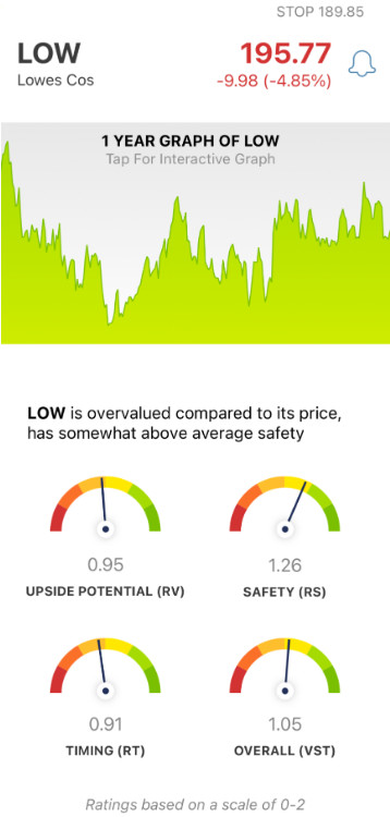 VectorVest advocates buying safe, undervalued stocks, rising in price. Right now, LOW has fair upside potential and timing ratings that are just below the average. But it still has very good safety.