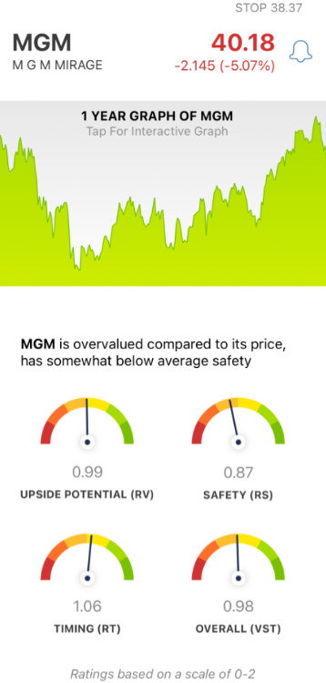 VectorVest advocates buying safe, undervalued stocks, rising in price. Right now, MGM has fair upside potential, safety, and timing - but you don’t have to question what your next move should be. A clear answer is waiting for you at VectorVest.