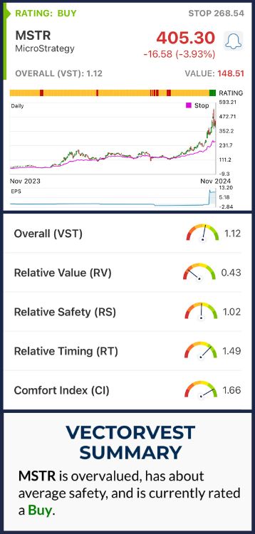 The overall VST rating for MicroStrategy is 1.12, which is classified as good. With a Buy recommendation from VectorVest, it's important to assess this free stock analysis and get the full picture on MSTR's potential before making any moves!