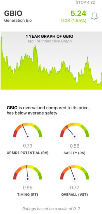 VectorVest advocates buying safe, undervalued stocks, rising in price. As for GBIO, it still has poor upside potential and safety even after the Moderna deal. And despite the movement we’ve seen over the past week, the timing is still just fair.