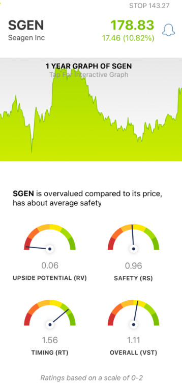 All things considered, SGEN has a good overall VST rating of 1.11. But is it enough to earn a buy? Does the excellent upside potential outweigh the abysmal price appreciation potential for this stock - or is it the other way around? Don’t play the guessing game or let emotion influence your decision-making. Get a clear answer on your next move with a free stock analysis today.