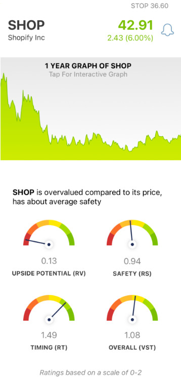 Shopify (SHOP) stock chart from VectorVest Mobile