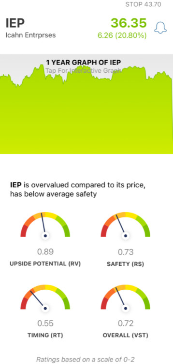 VectorVest advocates buying safe, undervalued stocks, rising in price. While it’s always important to take any Hindenburg report with a grain of salt, IEP does have problems purely from a stock analysis standpoint - while the upside potential is fair, the stock has poor safety and timing.