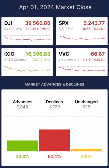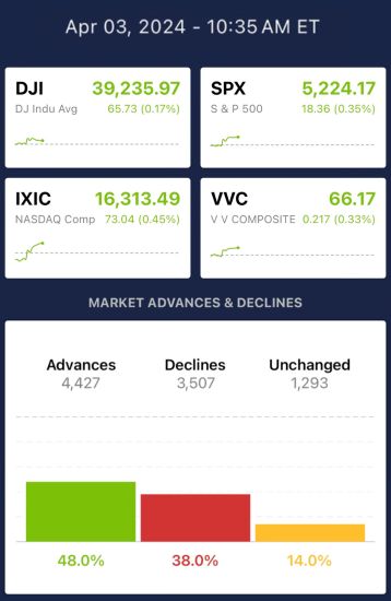 An hour into the trading session on Wednesday, stocks began to rebound due to the positive ISM data, with the Dow up 65 basis points (+0.17%), the S&P 500 up 18 basis points (+0.35%), and advancers taking the lead against decliners. However, despite the positive movement, quarter 2’s start remains negative due to the prior significant decline.