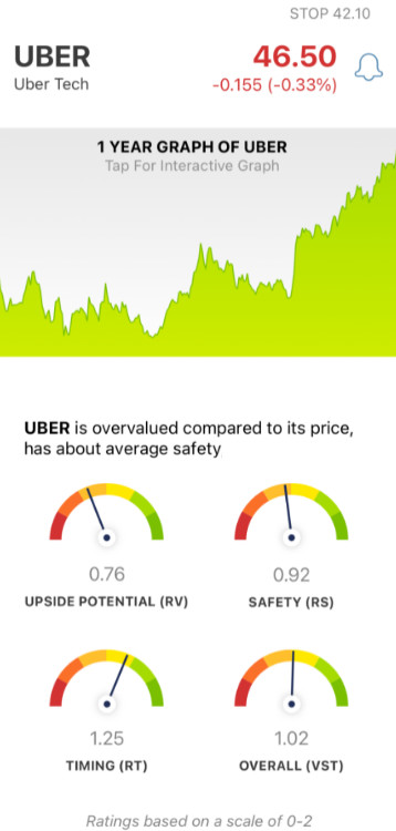 The overall VST rating of 1.02 is just above the average for UBER and is considered fair. Is it enough to justify buying the stock or bolstering your current position? Or, is this suggesting you should hold off on making a move either way?