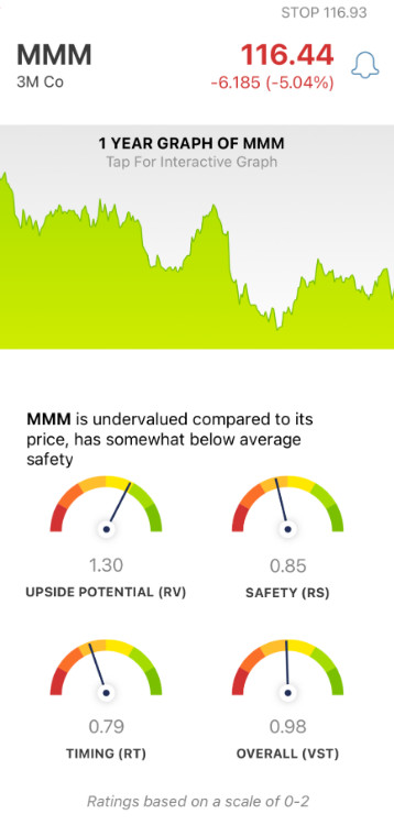 VectorVest advocates buying safe, undervalued stocks, rising in price. Right now, MMM has very good upside potential and is undervalued. However, the safety is below average and the timing is poor.