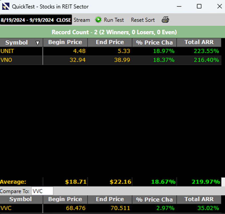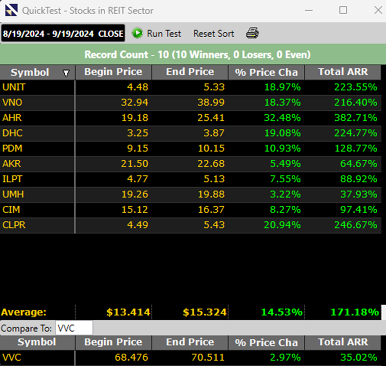 Going back to the Sector Viewer, I updated the date to August 19, 2024, and repeated the process. However, since the Bank Sector was still at the Top, I tested the second highest Sector, REIT.