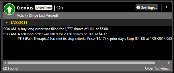 VectorVest AutoTimer can be used in historical mode to create, test, and refine automated trading systems that include market timing, stock selection, stop criteria, and a host of other portfolio management options. It also can be used in real time to implement an automated trading plan through VectorVest Portfolio Genius, a sophisticated “paper” trading tool that when used with AutoTimer allows investors to set up their trading plans with long, short, or neutral trading templates.