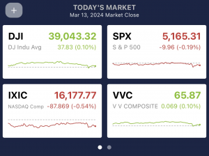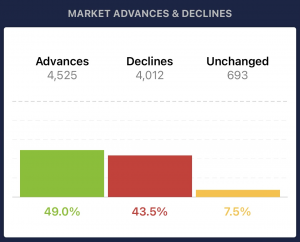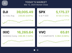 The closing on Tuesday, March 12th, after the less-than-thrilling CPI data, was actually in the green. The Dow was up 235 basis points (+0.61%), while the S&P 500 was up 57 basis points (+1.12%), showing undeterred market sentiment while advancers maintained a slight gain on decliners while showing a nearly flat market for buyers and sellers.