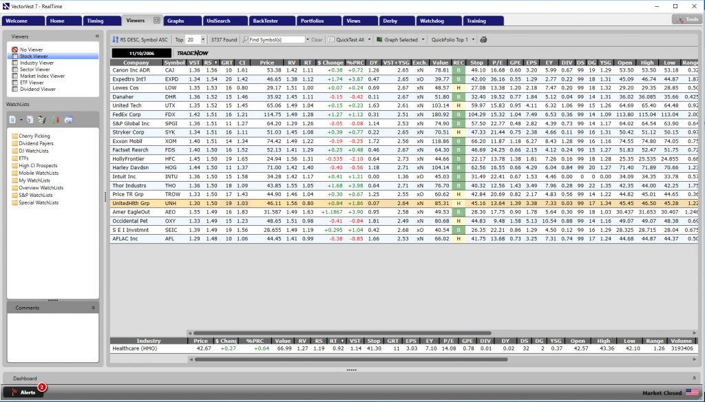 I use VectorVest. VectorVest is designed to conduct a factual, objective analysis of stock data and transform it into information and guidance. All of this information and guidance is stored in Stock Viewer.