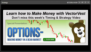 We also offer a Training tab that is a link to the VectorVest University training videos. These training aids will help you get up to speed quickly with the VectorVest software. VectorVest, while easy to use, is very powerful. If you want to fully understand the functionality, you will love these easy to follow along training sessions. Along those same lines, VectorVest has the Strategy video. Updated daily, this video gives you a rundown on the market and how VectorVest recommends playing it. You are offered a choice of whether to watch the video or read the text. If you have a slower computer, bad connection or you’re short on time, the text option can come in quite handy.