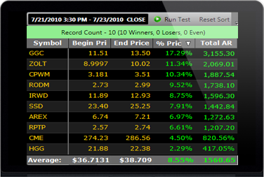 With 28 built in searches (18 long/10 short), you’ll have no problem finding a search to fit your technical trading style. Combine your favorite fundamental screens with your favorite technical, and you’ll have search power at your fingertips as never before.