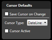 Cursor Defaults allow you to choose the type of cursor that is displayed on your chart. By default, no cursor is selected as the default. You may set the cursor defaults, or choose your cursor manually from the graphing toolbar.